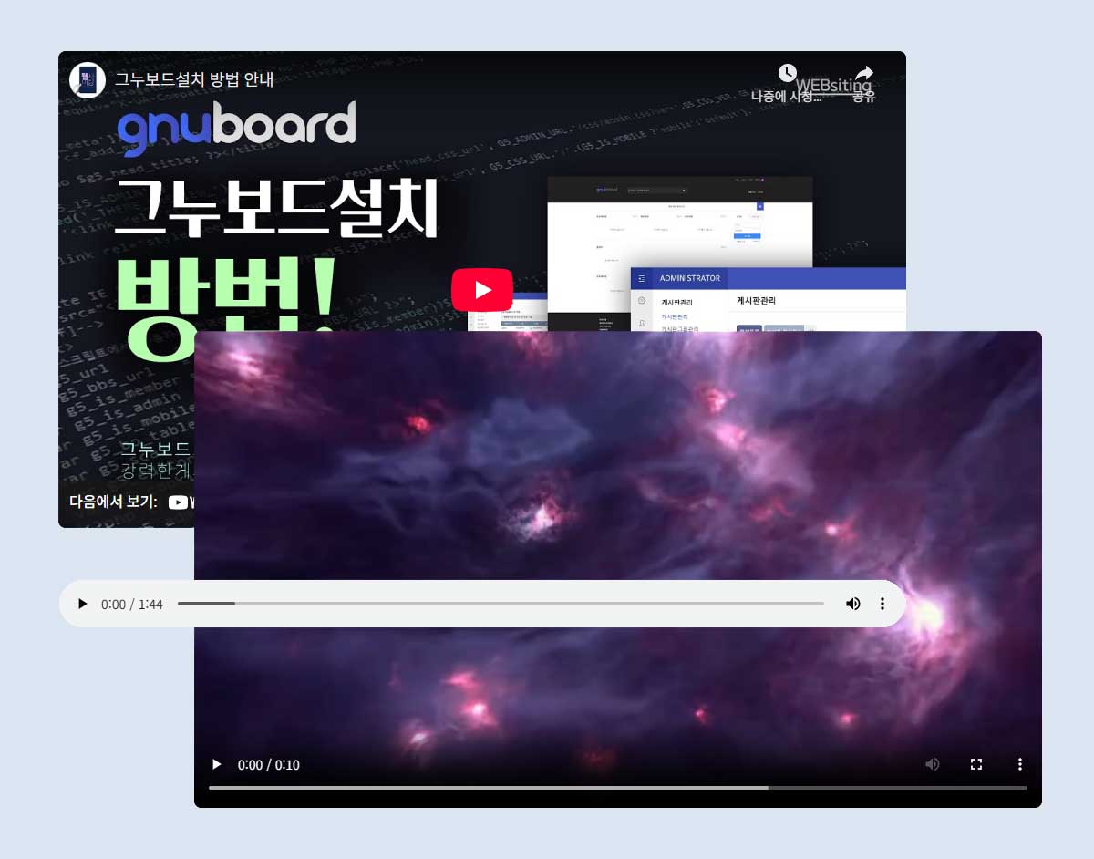 - 동영상(mp4, avi, mov, ogg, webm) 첨부파일 자동 재생 영역 생성