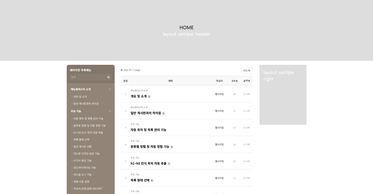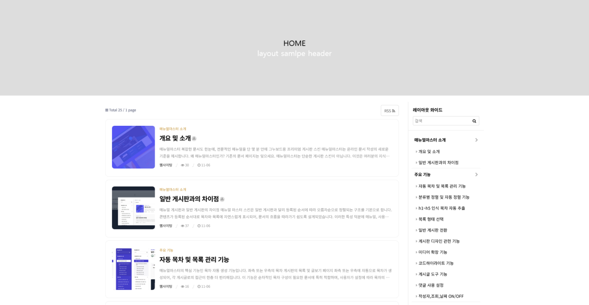 홈페이지의 레이아웃에 포함하여 적용되는 예제 입니다.