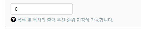 - 기본값은 0이며, 숫자가 작을수록 상단에 먼저 출력됩니다.