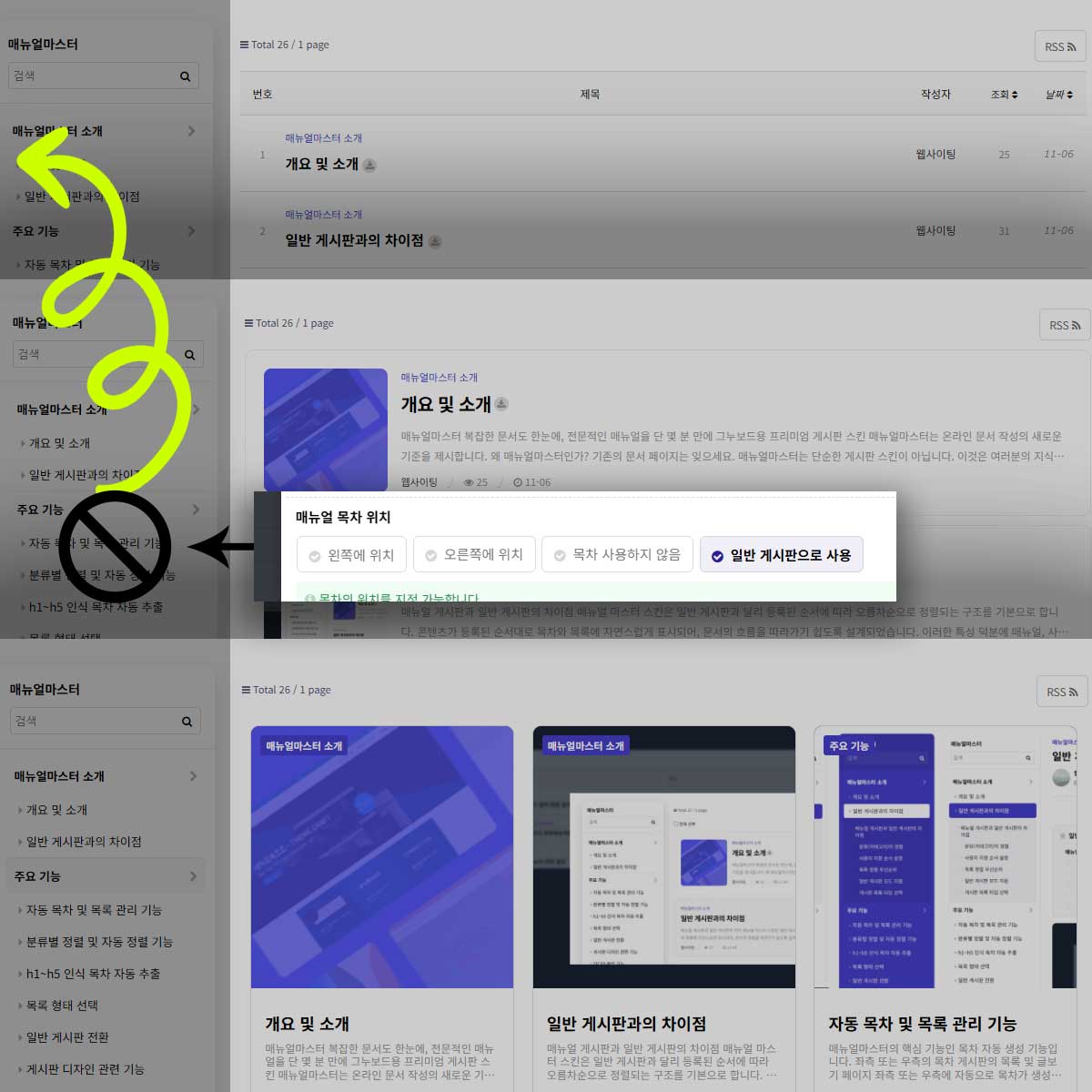 매뉴얼 기능 ON/OFF (일반 게시판 전환)